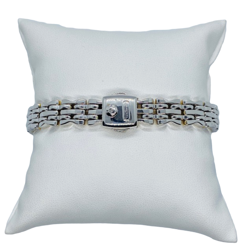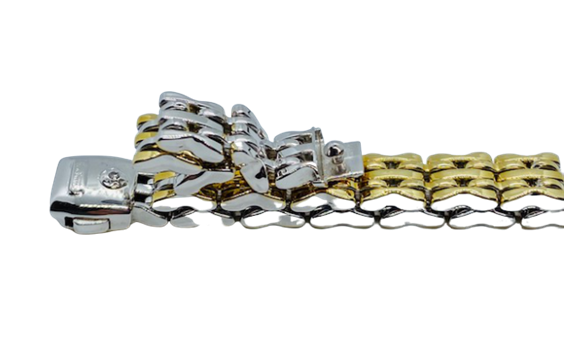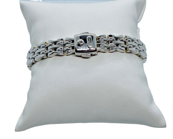 BRACCIALE MAISON "CHIMENTO" IN ORO BIANCO SOPRA E SOTTO MIN ORO GIALLO 18K .LA MAGLIA E' MORBIDA , REVERSIBILE ED HA UNA CHIUSURA DI SICUREZZA CON INCASTONATO UN DIAMANTINO PER CT 0,03.