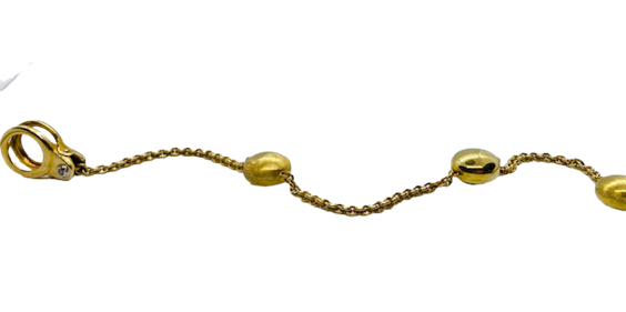 BRACCIALE MAISON "CHIMENTO" IN ORO 18K CON CHIUSURA A PINZA DI SICUREZZA CON INCASTONATO UN DIAMANTE PER CT 0,03 . LA MAGLIA E' MORBIDA E MOLTO CONFORTEVOLE AL POLSO