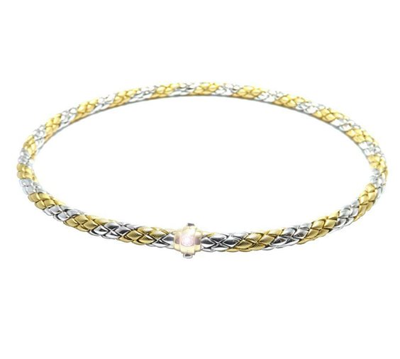 COLLANA CHIMENTO IN ORO GIALLO E BIANCO 18 Ct DELLA COLLEZIONE 'STRECH' CON BREVETTO DI ELASTICITA' . ALL'INTERNO DELLA MAGLIA ESISTE UNA SPIRALE IN ORO CHE PERMETTE ALLA COLLANA L' ESTENSIBILITA' E QUINDI UNA MIGLIOR INDOSSABILITA'
