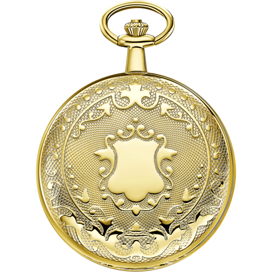 Orologi da tasca al quarzo Festina. In acciaio dorato con coperchio e fondello decorato con blasone e possibilità di incisione. Quadrante bianco con numeri arabi neri stampati, datario al 3. Catena coda di topo cm 36 con moschettone finale. IN CASO DI INCISIONE NON SARA' POSSIBILE IL RESO