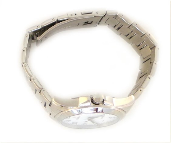 Orologio solo tempo , Cassa Acciaio,Diametro 40 Mm, quadrante bianco. Resistenza All’Acqua 5 Atmosfere, cinturino acciaio, meccanismo al quarzo.