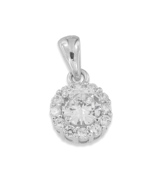 Pendente in argento 925 con zirconi incastonati a griffe. Il pendente è completo di catena maglia veneta cm 42.