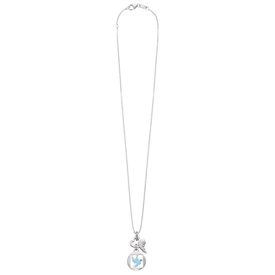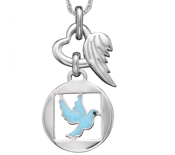 La colomba della pace Herzengel - questa dolcissima collana con un ciondolo con una celestiale colomba blu fa palpitare il cuore di ogni bambina. La tenera colomba, messaggera di pace, infonde mitezza, calma e tranquillità. La collana convince per il suo piccolo cuore-ala e i colorati dettagli smaltati. Il meraviglioso gioiello si chiude con un moschettone e può essere regolato in due lunghezze. Per i suoi gioielli, Herzengel utilizza argento 925 sterling, ossia la lega più preziosa. Il rodio, usato per raffinare ulteriormente l’argento, contribuisce a rendere il gioiello piacevole da indossare e lo protegge dall’ossidazione Tutti i gioielli sono privi di nichel e pertanto particolarmente adatti anche alle persone allergiche.