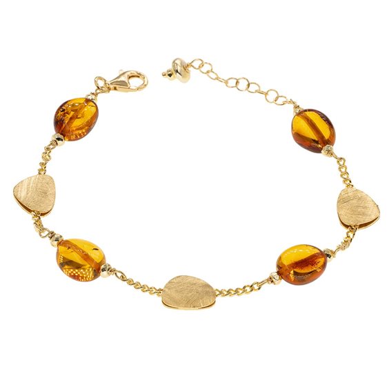 Bracciale in argento dorato con ambra del mar Baltico naturale alternato da intercalari effetto graffiato.