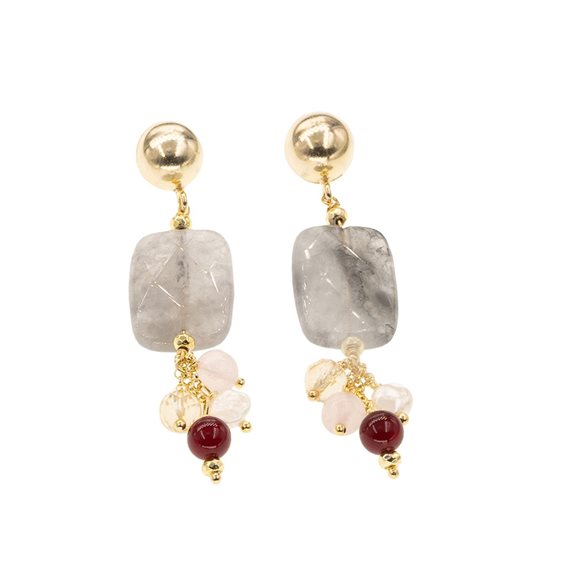Orecchini in argento 925 placcato in oro giallo 18ct con cloudy quartz, citrino, quarzo rosa, granato e perle. Collezione Horos Koliè 925 Made in Italy