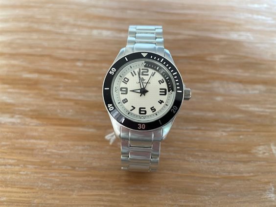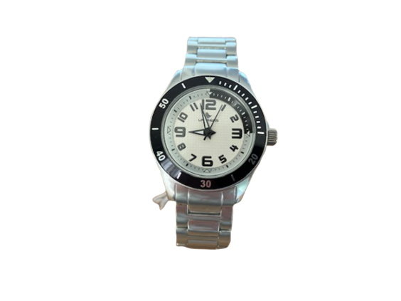 OROLOGIO LAURENS CON CASSA E BRACCIALE IN ALLUMINIO, GHIERA LACCATA NERA, MOVIMENTO AL QUARZO, QUADRANTE AVORIO CON ORE ARABE E SFERE LUMIBRITE, WR 3 ATM.