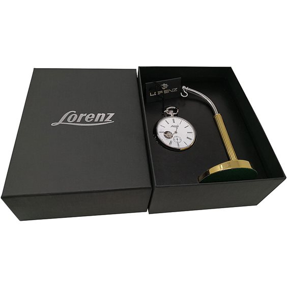 Lorenz propone orologi da tasca, sin dagli anni '50 quando era fornitore ufficiale delle Ferrovie dello Stato. L’orologio da tasca è un segnatempo molto particolare in quanto attrae i collezionisti, giovani e meno giovani, alla ricerca di un oggetto speciale da mostrare quando si guarda l’ora. La collezione è ricca e offre movimenti meccanici a carica manuale o movimenti al quarzo. Tutti i prodotti sono corredati di catena e stand porta orologio e confezionati in un astuccio speciale. Lo stand permette di appendere il prodotto quando non è nel taschino, in modo da ammirarne tutta la bellezza. Il tempo corre ma con gli orologi da tasca Lorenz possiamo prenderci una pausa per guardare l’ora in modo non convenzionale.