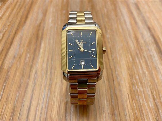 OROLOGIO LORENZ CIN CASSA E BRACCIALE IN ACCIAIO BICOLORE, MOVIMENTO AL QUARZO SWISS MADE, QUADRANTE BLU CON INDICI IN RILIEVO E SFERE LUMIBRITE, WR 3 ATM. GARANZIA 3 ANNI
