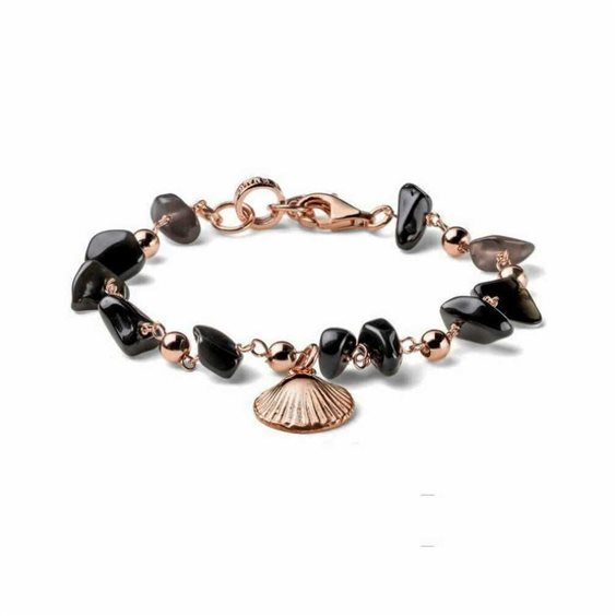 BRACCIALE DONNA COLLEZIONE SOLEIL ARGENTO PLACCATO ORO ROSA 18KT E AGATA NERA • Bracciale DONNA cm.16+3 in Argento 925‰ • Chiusure moschettone • Agata nera • Interamente realizzato a mano • Made in Italy • Disegnato per Maria cristina sterling da Alessandro Magrino