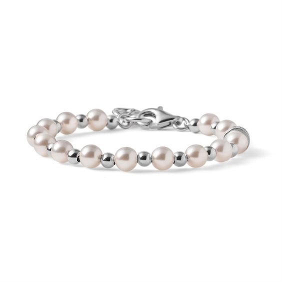 Bracciale in argento 925 con perle coltivate di acqua dolce mm 6 alternate a palline lisce. Chiusura a moschettone e anellini per l'allungo.
