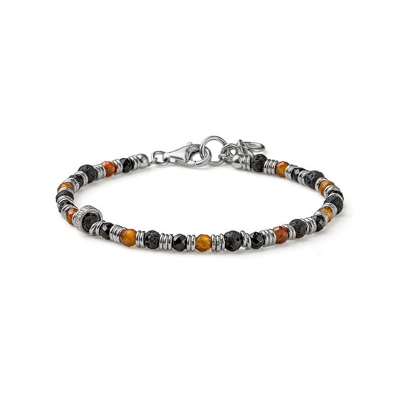 Bracciale Snake classic style in Argento 925‰ • Perle di lava, agata marrone e agata nera ø 4 • Chiusura moschettone • Interamente realizzato a mano • Made in Italy • Disegnato per Maria Cristina Sterling da Alessandro Magrino