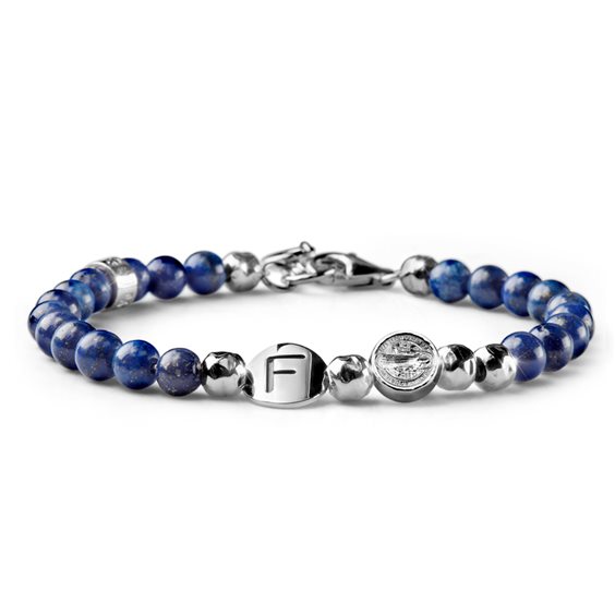 • Bracciale UOMO con lettera in Argento 925‰ • pietra naturale LAPIS diametro 6 mm e chiusura moschettone • Interamente realizzato a mano • Made in Italy • Disegnato per Mariacristinasterling da Alessandro Magrino