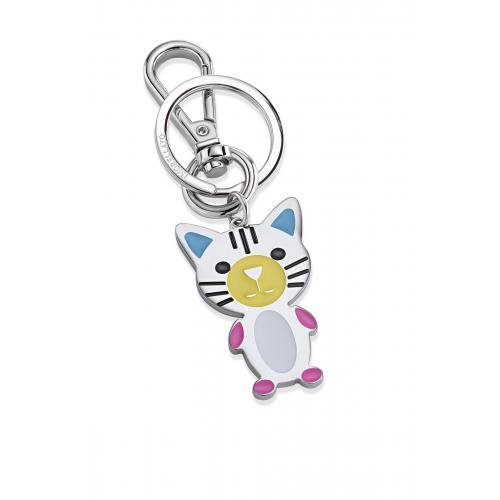 Portachiavi donna , acciaio 316L , lunghezza cm 10 , gattino con smalti , anello e moschettone. Immagine indicativa , la confezione può variare di forma e colore.