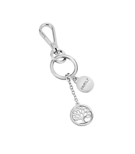 Portachiavi in acciaio, con scritta family e simbologia dell'albero della vita