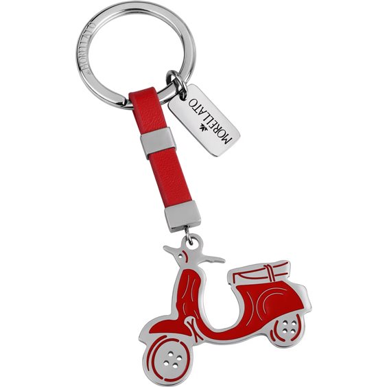 Portachiavi Morellato Corsa. In acciaio 316L smaltato e pelle rossa. Figura Vespa rossa, cm 10,5