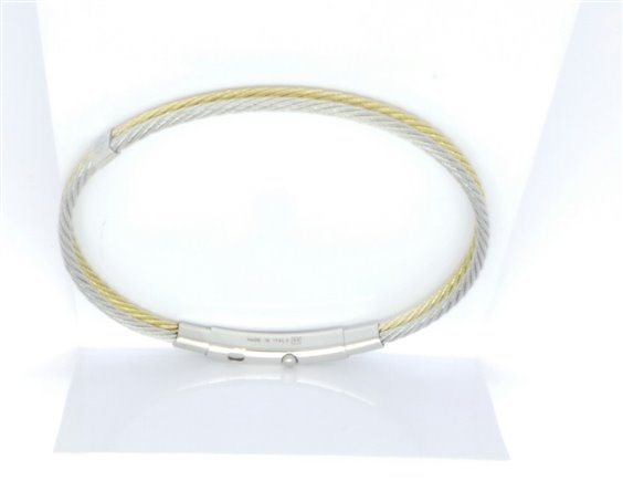 Bracciale fine doppio in acciaio anallergico e finitura in PVD colore acciaio e oro giallo. Misura unica da uomo con chiusura regolabile. Lunghezza: 18 -19 cm, altezza: 0,5 cm. Disponibile in vari colori. Made in Italy. Collezione Portofino Club Edition.