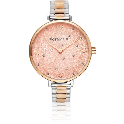 OROLOGIO AL QUARZO , CASSA E CINTURINO BICOLOR, QUADRANTE ROSA OPERATO DI STELLE E SWAROVSKI, WR 5ATM