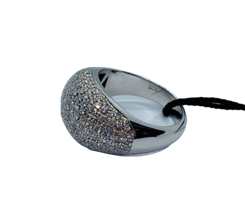 ANELLO MAISON "RECARLO" IN ORO BIANCO 18 K CON PAVE' DI DIAMANTI PER CT 1,97. FASCIA BOMBATA CON PAVE' DI DIAMANTI CON INCASTONATURA "VALENZANA" DI ALTO LIVELLO , STRUTTURA ROBUSTA MOLTO FACILE E CONFORTEVOLE DA INDOSSARE . ALL'INTERNO DELLA MONTATURA PUNZONE IN ORO PURO CON MARCHIO RECARLO. SCATOLA CERTIFICATO E GARANZIA ORIGINALI.