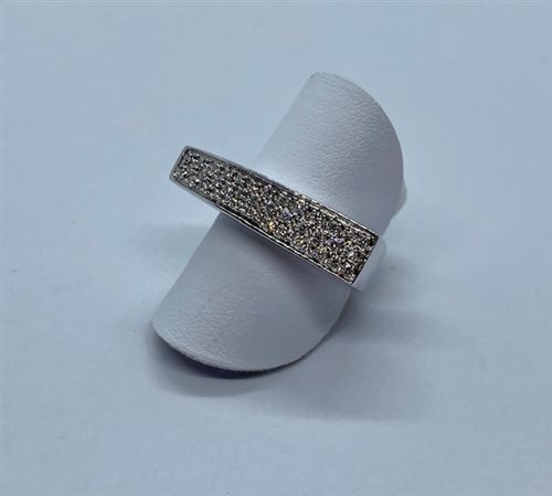 ANELLO IN ORO BIANCO 18 K CON DIAMANTI PER Ct 0,38. ANELLO DAL "LOOK" MOLTO ORIGINALE PER LA SUA FORMA ASIMMETRICA ED IRREGOLARE CON UN PAVE' A SCALARE DI DIAMANTI . SCATOLA, GARANZIA E CERTIFICATO ORIGINALI.