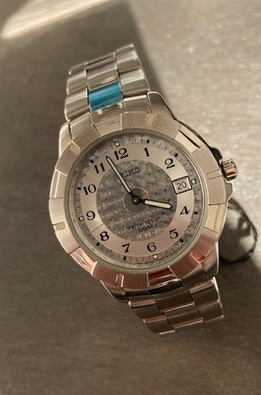 OROLOGIO SEIKO CON CASSA E BRACCIALE IN ACCIAIO ,CHIUSURA CON SICUREZA, MOVIMENTO AL QUARZO CON DATARIO, QUADRANTE COLOR ARGENTO CON ORE ARABE E SFERE LUMIBRITE, VETRO MINERALE, FONDO A VITE WR 5 ATM. GARANZIA 2 ANNI.