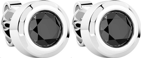 Orecchini in argento 925 a lobo di forma rotonda con zircone nero. Finitura lucida.