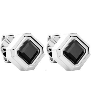 Orecchini in argento 925 a lobo a forma esagonale con zircone nero. Finitura lucida.