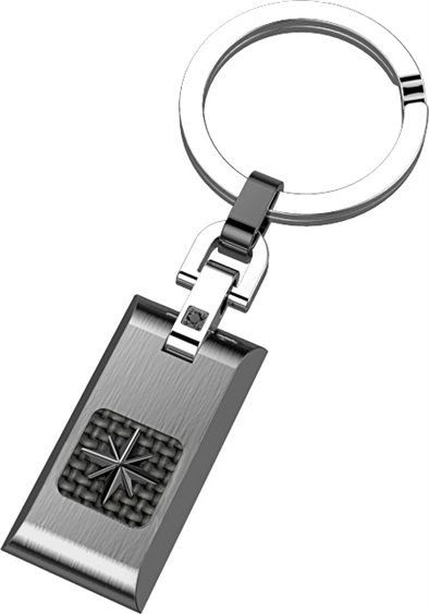 Portachiavi in acciaio con targa e rosa dei venti rifinite in pvd nero e fibra di carbonio.